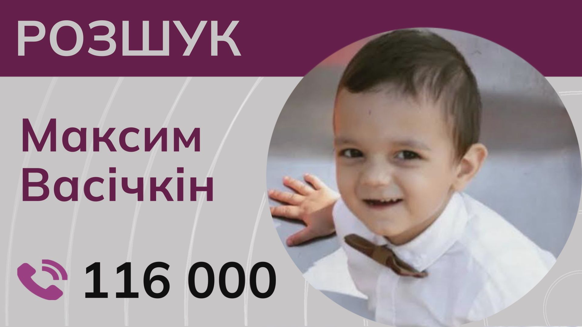 👉 Якщо ви знаєте про Максима Васічкіна якусь інформацію чи, де він може бути зараз – телефонуйте нам на гарячу лінію 116 000. Дзвінки до «Служби розшуку дітей» безкоштовні з усіх мобільних операторів.