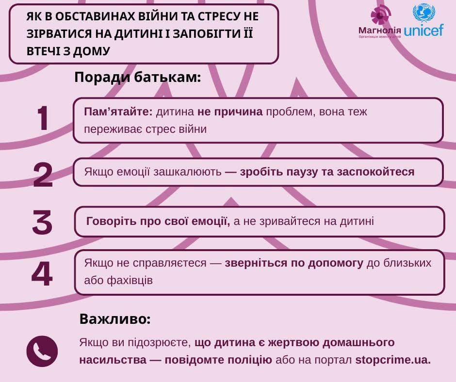 Особливо небезпечно, що в такі періоди зростає ризик сімейного насильства – як фізичного, так і психологічного. Все починається з крику, приниження чи зривів на найбільш незахищених, – на дітях, що у свою чергу може призвести навіть до втечі з дому.