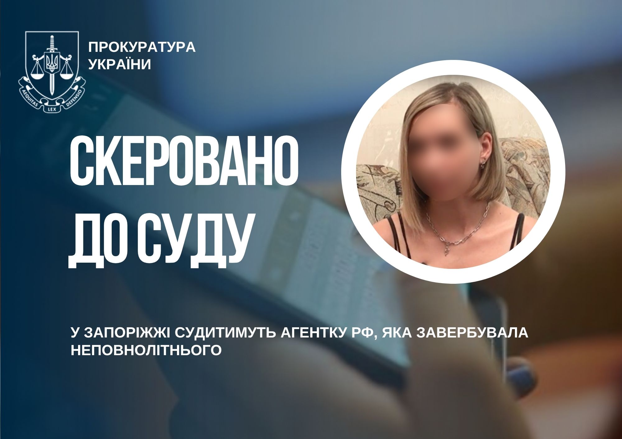 Агентку ворога, яка завербувала неповнолітнього хлопця, судитимуть у Запоріжжі