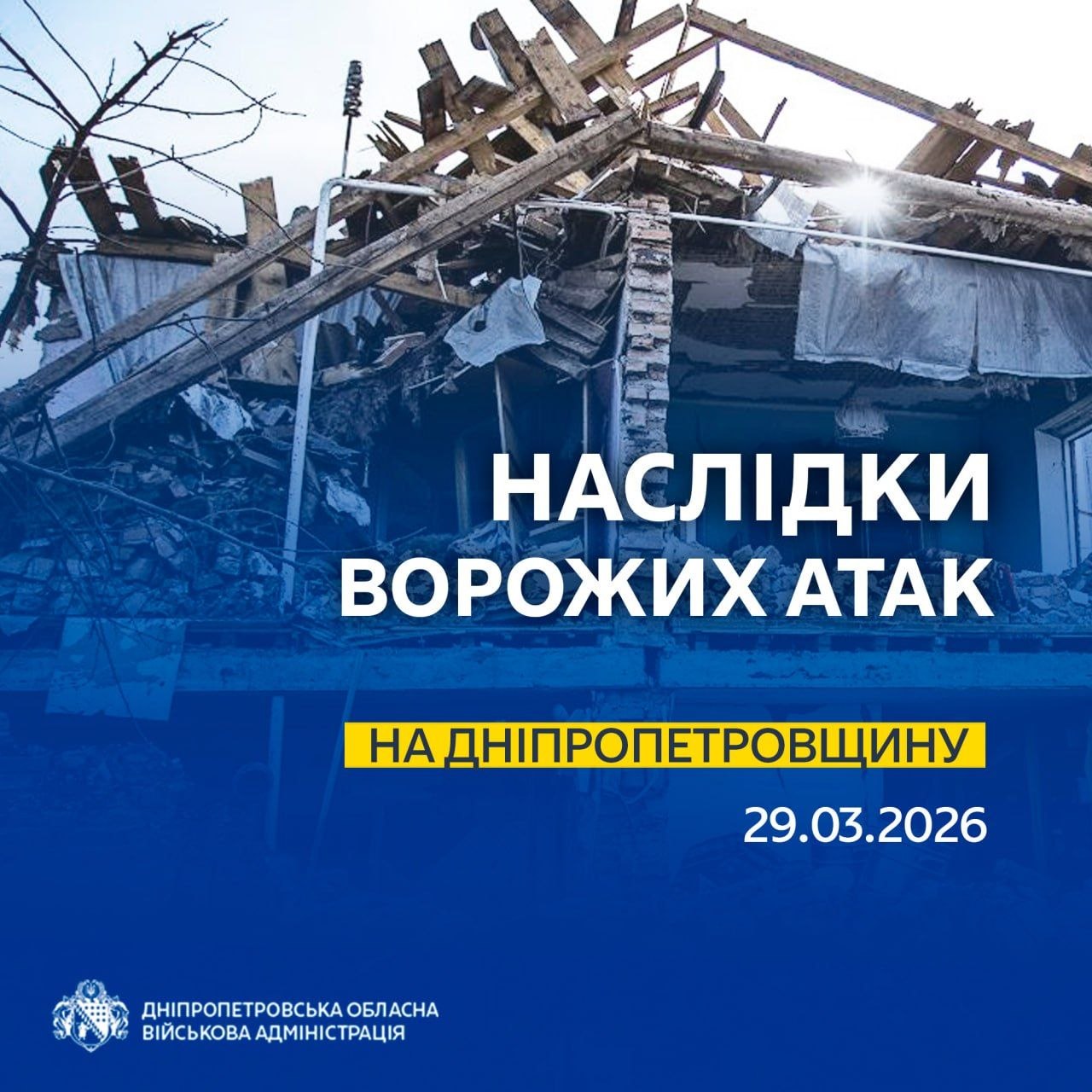 Оперативна ситуація щодо ворожих обстрілів Дніпропетровщини станом на ранок 29 березня, - голова ОВА