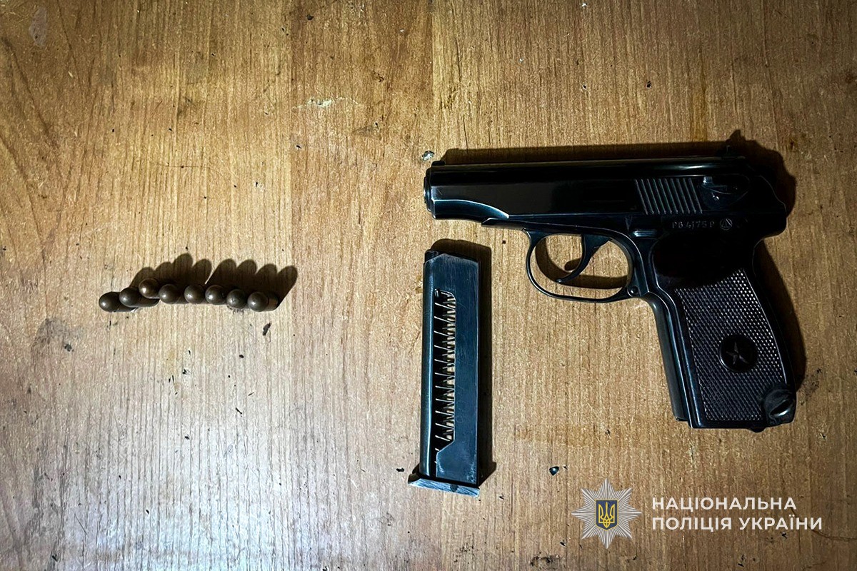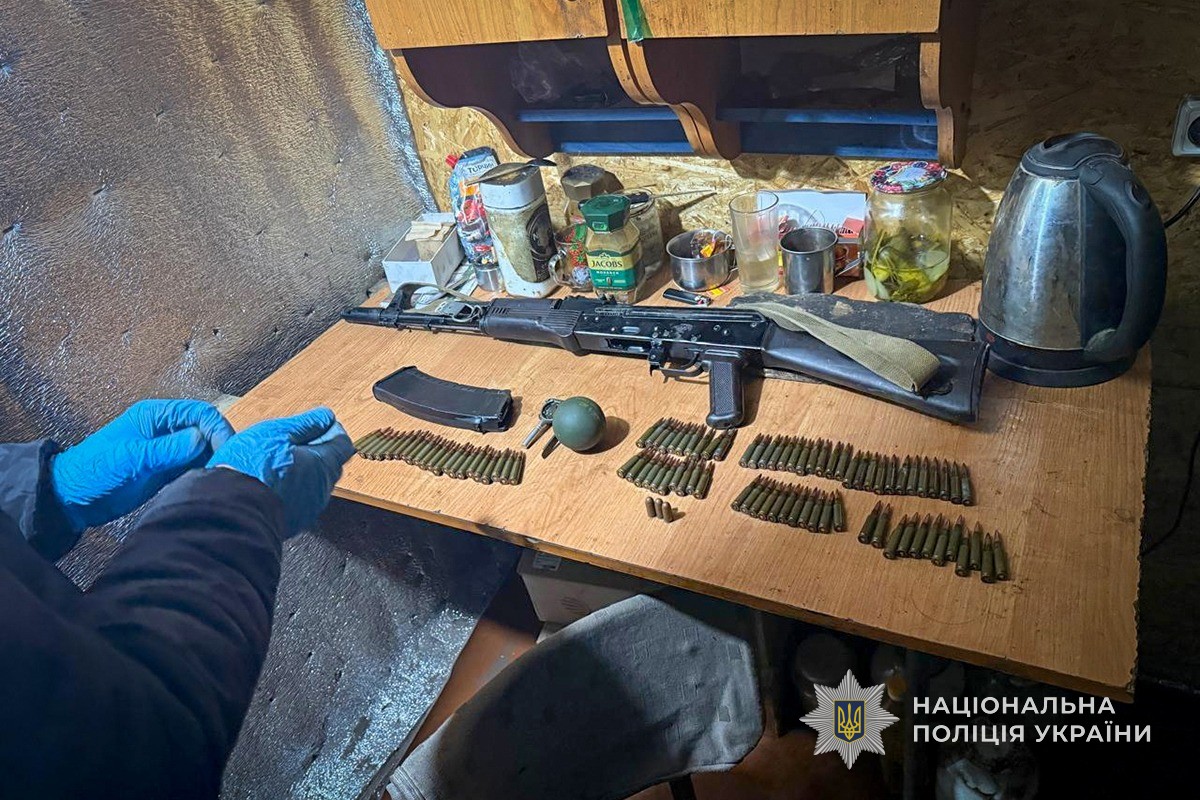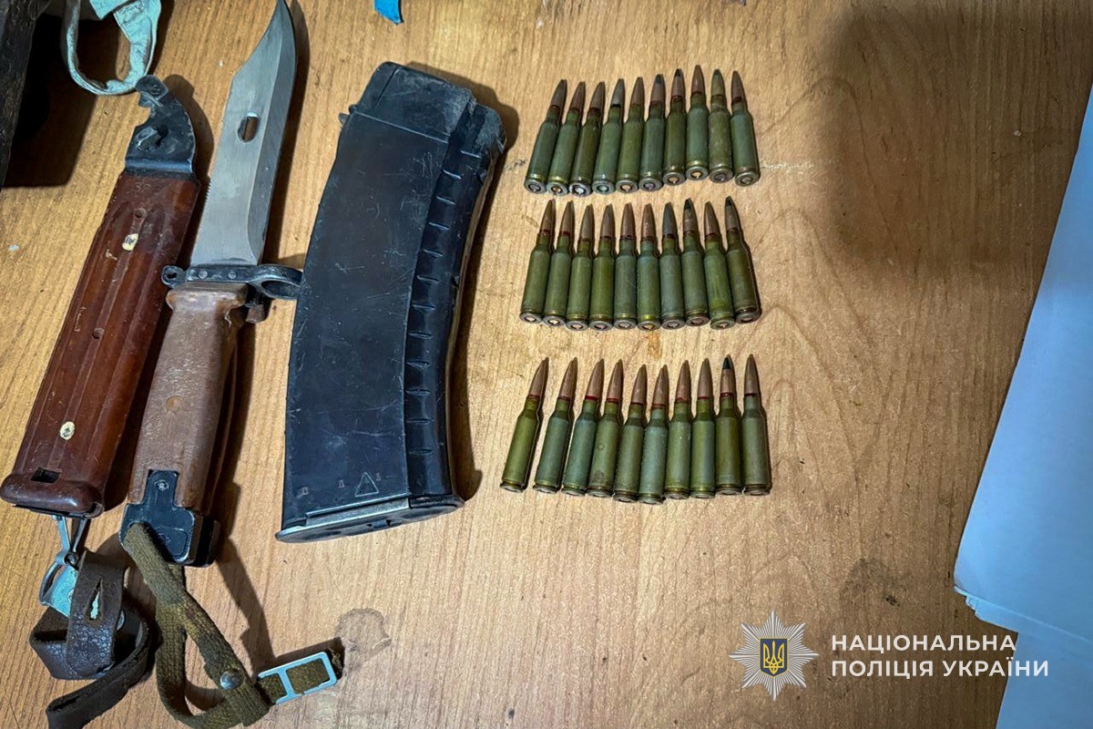 Під час проведення санкціонованого обшуку поліцейські виявили та вилучили автомат АК-74 із магазинами, пістолет ПМ, осколково-наступальну гранату, а також понад 140 патронів різного калібру. Згідно з висновком експерта, вилучений пістолет є придатним до стрільби.