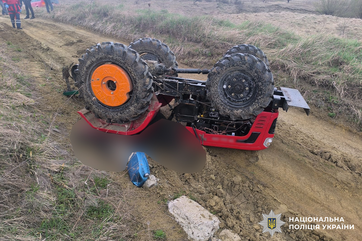 Дорожньо-транспортна пригода трапилася в адміністративних межах села Грушівка Чернівецького району. Внаслідок перекидання трактора водій транспортного засобу отримав тілесні ушкодження, несумісні з життям. За цим фактом поліцейські розпочали кримінальне провадження.