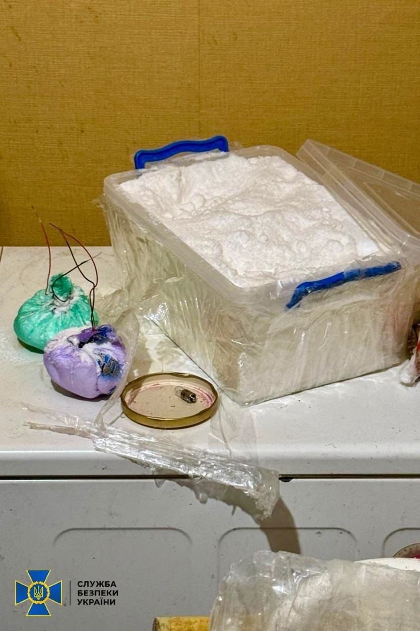Під час обшуків у затриманих вилучено готовий СВП, залишки складових до вибухівки, мобільні телефони для дистанційної активації підриву та смартфон із доказами контактів з російським спецслужбістом.