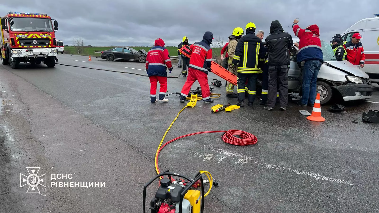 Прибувши на місце виклику, рятувальники побачили, що відбулося зіткнення двох легкових автомобілів — Mercedes та Hyundai.