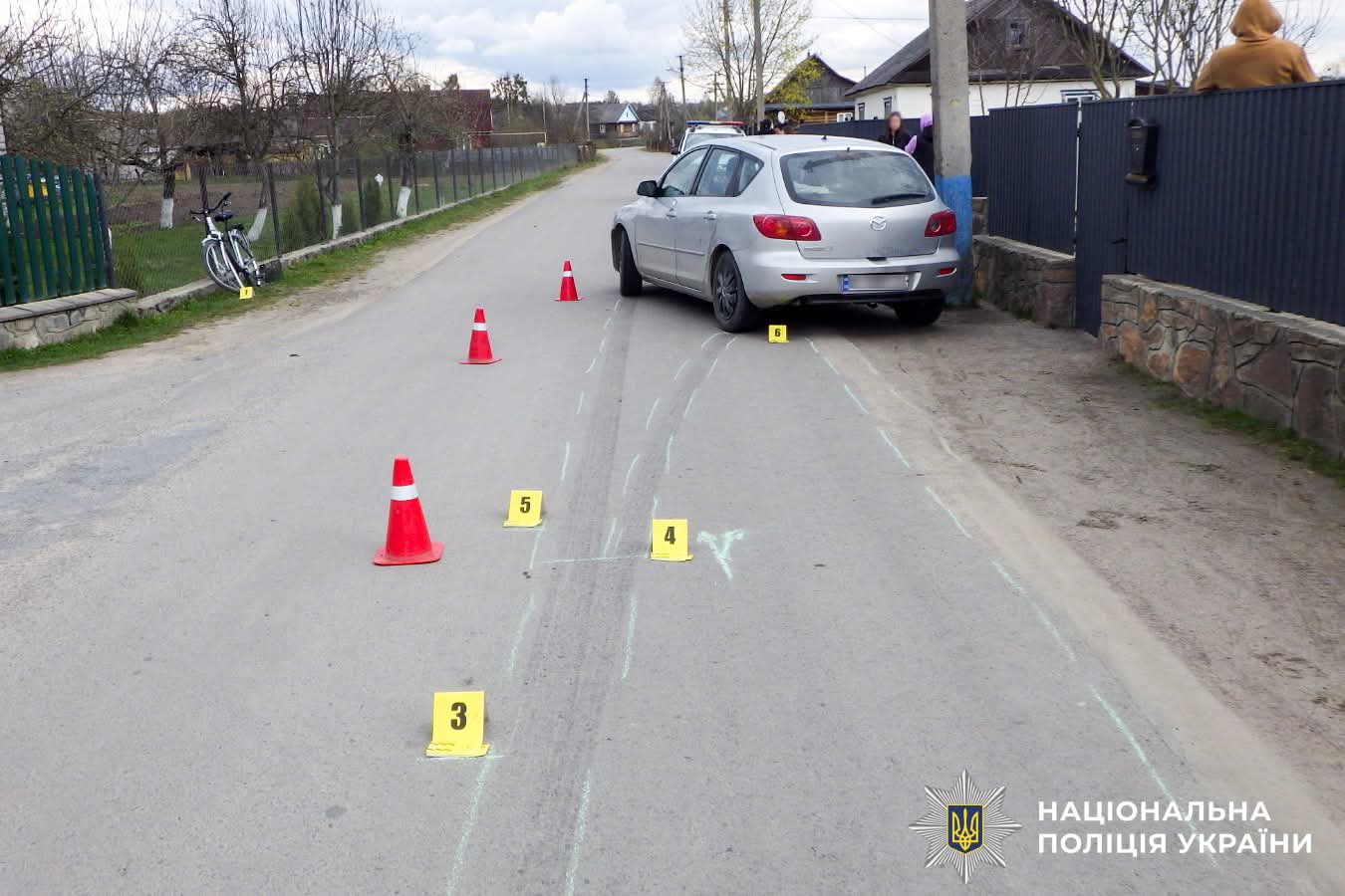 Слідчий встановив, що водійка автомобіля «Mazda 3», 25-річна жителька села Вири, допустила наїзд на 11-річного місцевого жителя, який велосипедом їхав по краю проїзної частини.