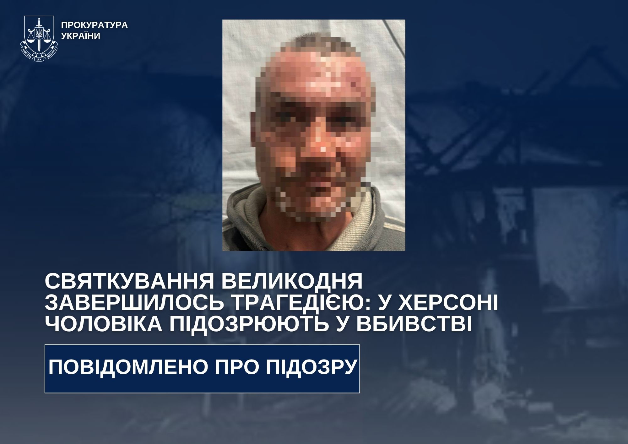 За процесуального керівництва Херсонської обласної прокуратури чоловіку повідомлено про підозру в умисному вбивстві.