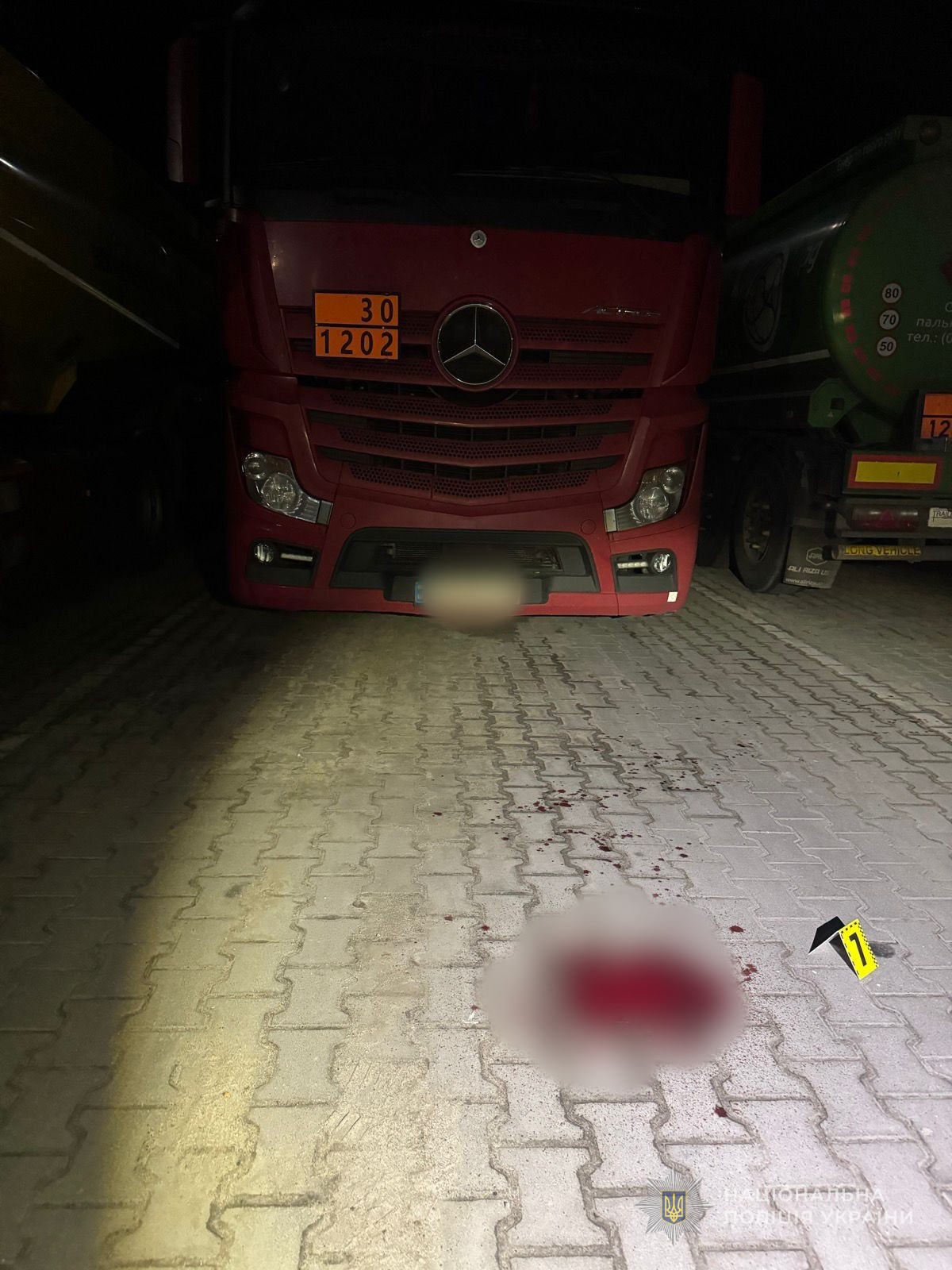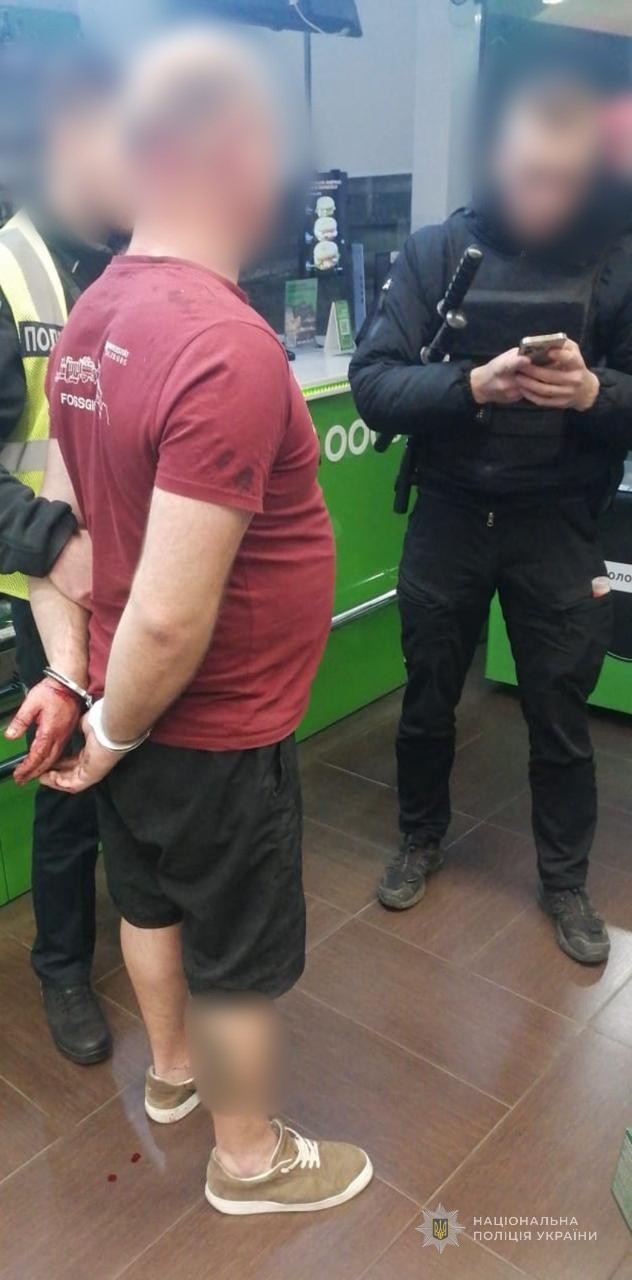 На місці працювала слідчо-оперативна група поліції. Ніж вилучили. Зловмисника затримали в порядку ст. 208 КПК України. Тіло направили на експертизу.