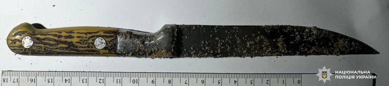 З місця події поліцейські вилучили ніж та інші речові докази, які скерували на судові експертизи. Зловмисника затримали у процесуальному порядку.