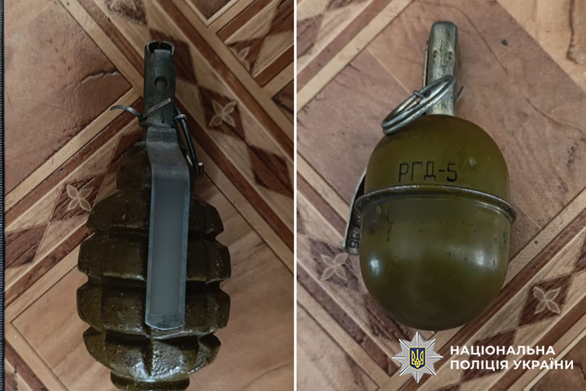 Фахівці вилучили з автомобіля бойову гранату М67. В подальшому під час обшуку за місцем проживання у порушника виявили ще дві гранати: РГД 5 та Ф-1. Окрім того, поліцейські також вилучили автомат, гвинтівку, мисливську рушницю, понад пів тисячі набоїв калібру 5,45 та 7,62, а також чотири детонатори та дві тротилові шашки.