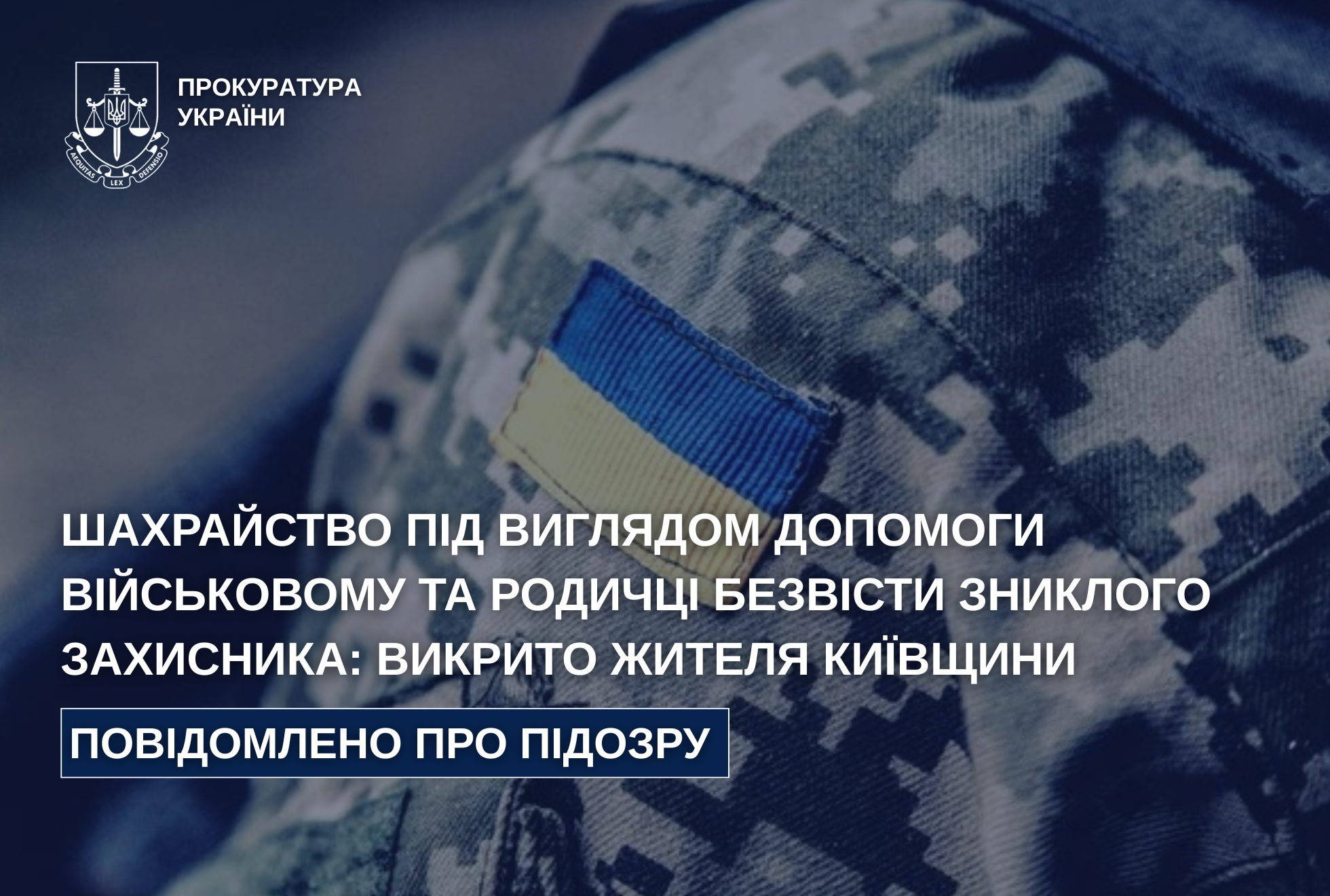 Жителя Київщини підозрюють у шахрайстві щодо військовослужбовця та родички зниклого бійця
