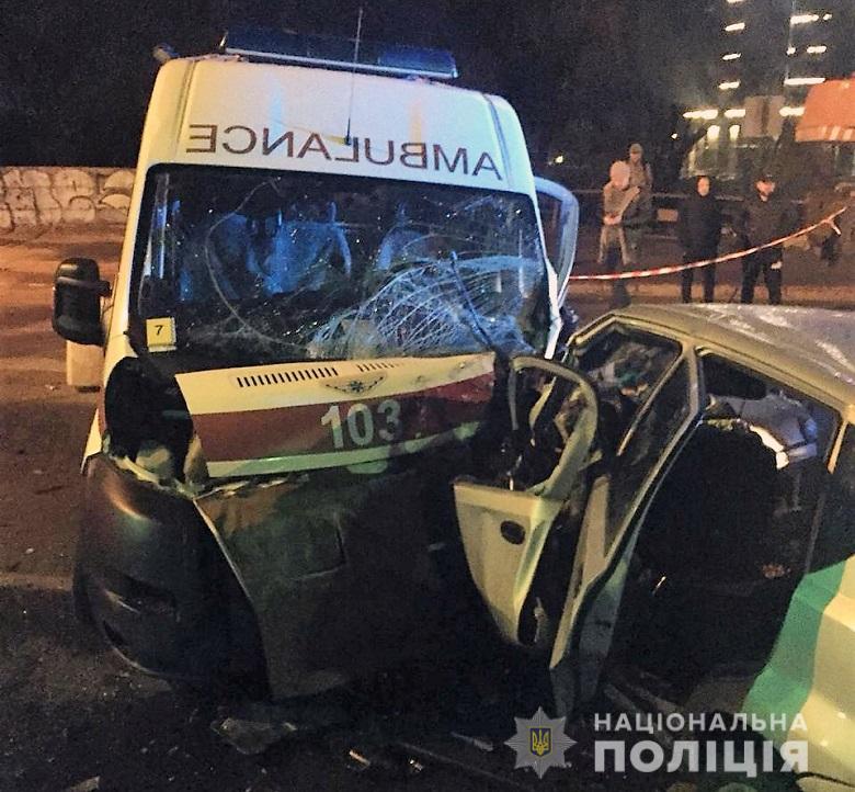За попередньою інформацією, водій легкового автомобіля їхав у напрямку станції метро «Лівобережна», виїхав на зустрічну смугу, де зіткнувся із машиною "швидкої" та зачепив «Фольксваген», що прямував за «швидкою».