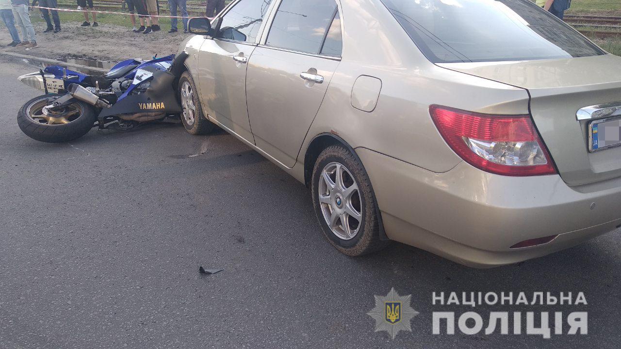 Попередньо встановлено, що 23-річний водій мотоцикла «Yamaha» скоїв наїзд на пішохода. Від удару транспортний засіб відкинуло на зустрічний автомобіль «Byd».