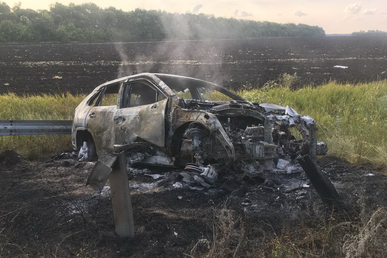 О 16:53 на номер «101» надійшло повідомлення про пожежу в автомобілі «Toyota RAV 4» 2019 р.в., що загорівся в результаті дорожньо-транспортної пригоди. Подія сталася на 62-му кілометрі траси «Харків-Перещепіно». Автівка злетіла з мокрої ділянки проїжджої частини, ударилась у відбійник та зайнялась. В цей же час у подібну аварію але без пожежі потрапили ще 2 автівки: « Chevrolet Camaro» 2018 р.в. та «Geely Emgrand Х7» 2014 р.в.