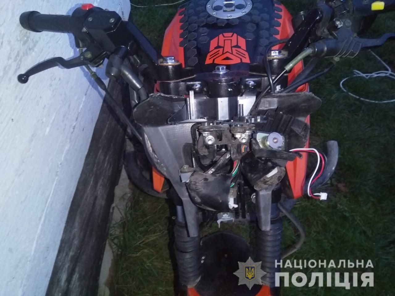 Поліцейські встановили, що 17-річний водій мотоцикла «Hornet», житель села Кам’яне, не вибрав безпечної швидкості руху, не впорався із керуванням та впав.