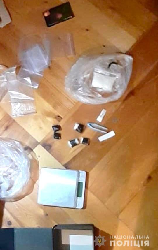 Під час санкціонованих обшуків за місцями мешкання зловмисників, а також в гаражних приміщеннях поліцейські вилучили мобільні телефони, SIM-картки різних мобільних операторів, банківські картки, електронні ваги, ноутбук, близько 1 тисячі пакунків з фіксатором для фасування, рекламні наліпки магазину у кількості 100 штук, психотропну речовину PVP.