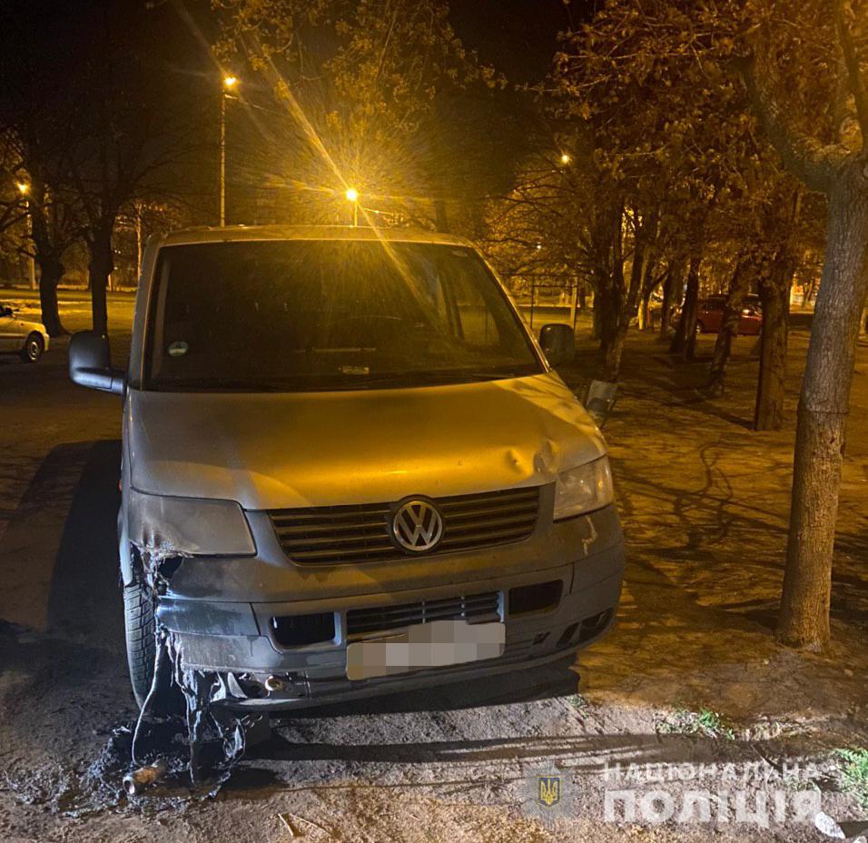 13 квітня о 03:15 до поліції надійшла інформація про те, що біля будинку 85-Г по проспекту Тракторобудівників горить автомобіль «Mitsubishi Grandis», якій був припаркований біля під’їзду. Протягом кількох хвилин надійшли ще два виклики щодо загоряння автомобілів по проспекту Тракторобудівників : «Mercedes Vito» і «Volkswagen T5» - біля будинку 83-Е та «Volkswagen LT-32» - біля будинку 140-В.
