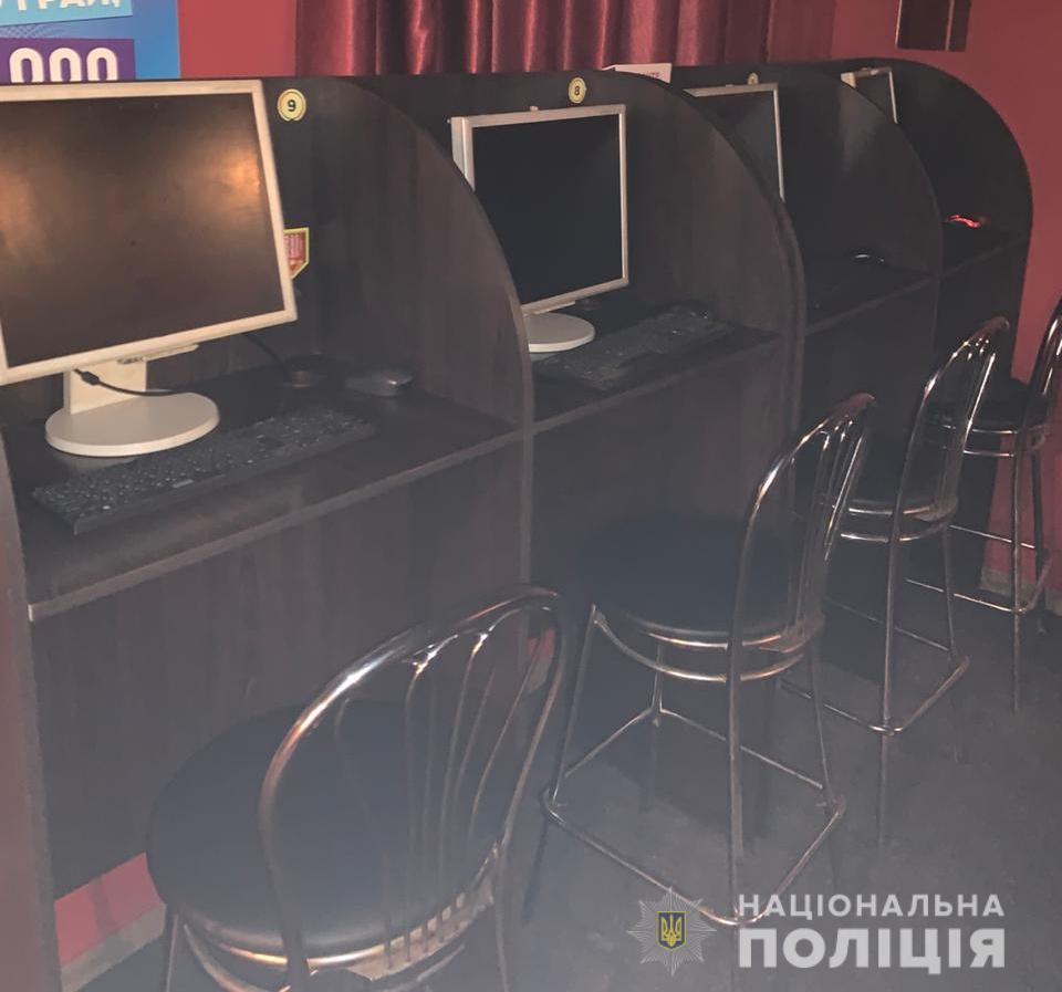 З закладу слідчі поліції в ході санкціонованого обшуку вилучили 15 комплектів комп’ютерного обладнання та іншу техніку, за допомоги якої надавалися послуги у гральній сфері. Вирішується питання щодо накладання арешту на вилучене майно.