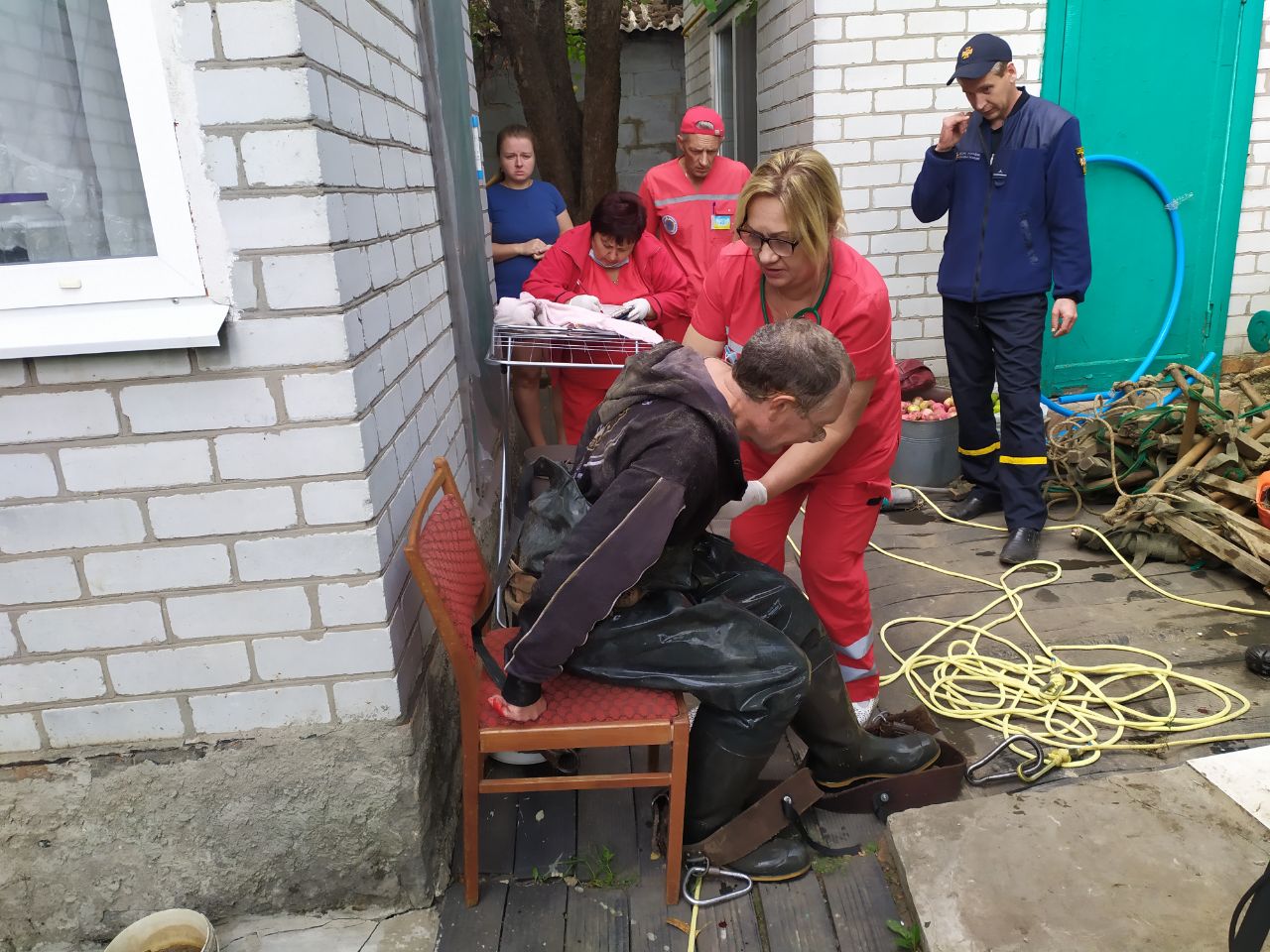 До місця виклику було направлено відділення рятувальників 48-ї пожежно-рятувальної частини з міста Люботин. За допомогою рятувальної мотузки чоловіка було врятовано.