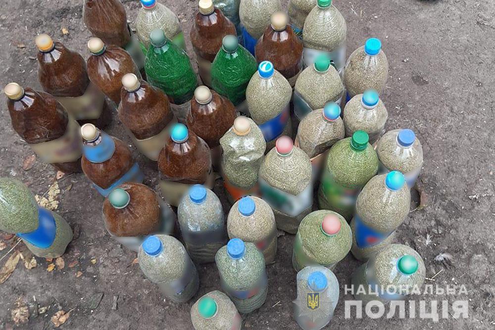 Під час заходів поліцейські виявили пластикові пляшки, заповнені висушеною та подрібненою марихуаною, насіння конопель та саморобний пристрій для вживання наркотику. Вилучені речові докази направлено на проведення експертного дослідження до Харківського науково-дослідного експертно-кримінального центру МВС України.