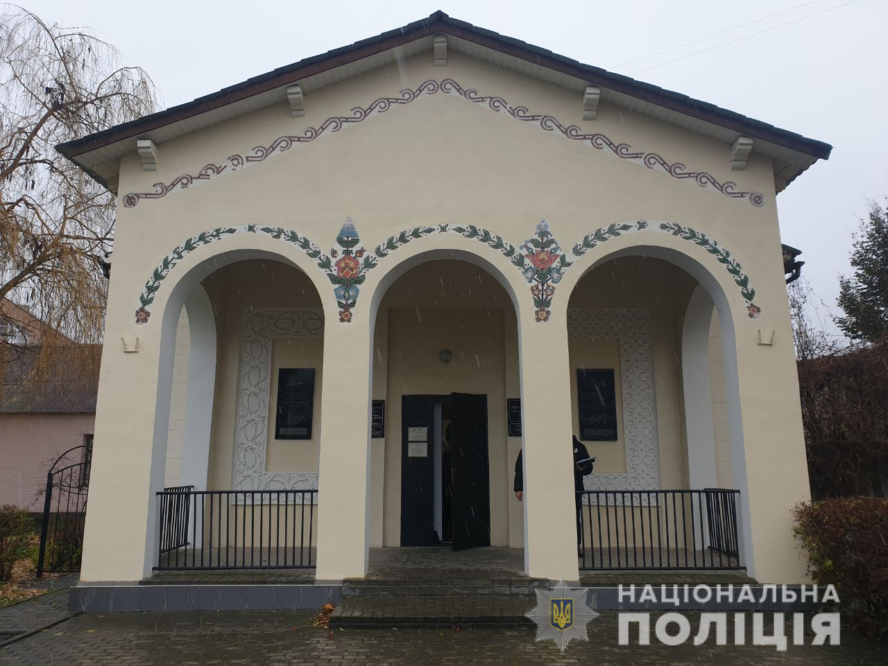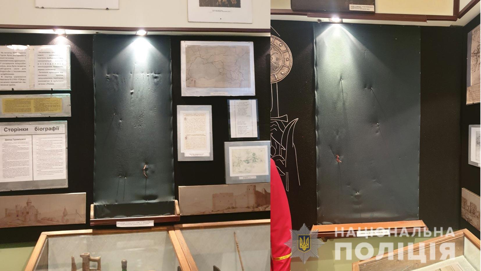 До поліції Миргородського району надійшло повідомлення, що у Миргороді, по вулиці Незалежності, невідома особа проникла до приміщення літературно-меморіального музею «Давида Гурамішвілі» і викрала музейні експонати стародавньої зброї.