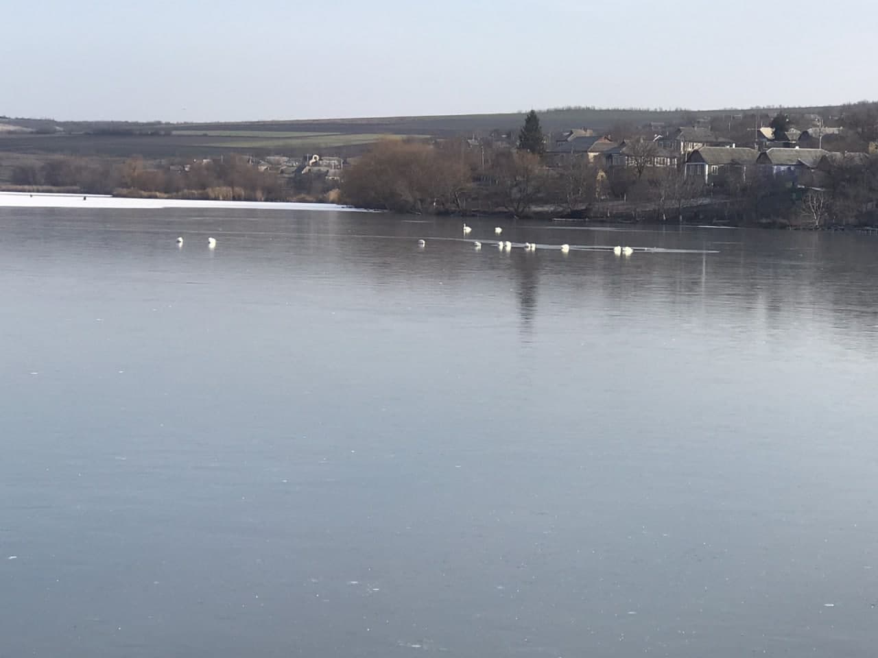 У льодові кайданки на ставку потрапили і лебеді у смт. Окни, що Одещині.