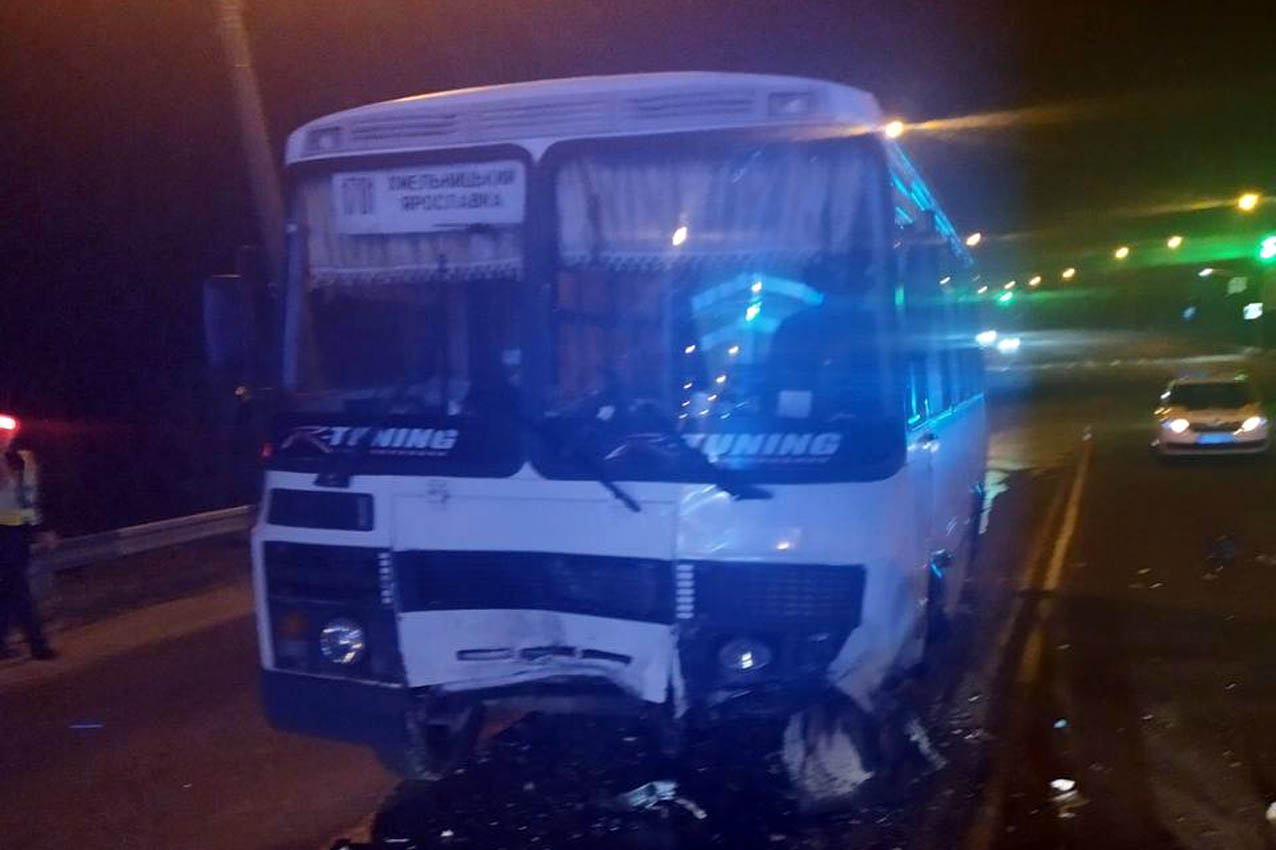 У ДТП на Хмельниччині зіткнулись автобус та легковик, водій якого не вижив. ФОТО