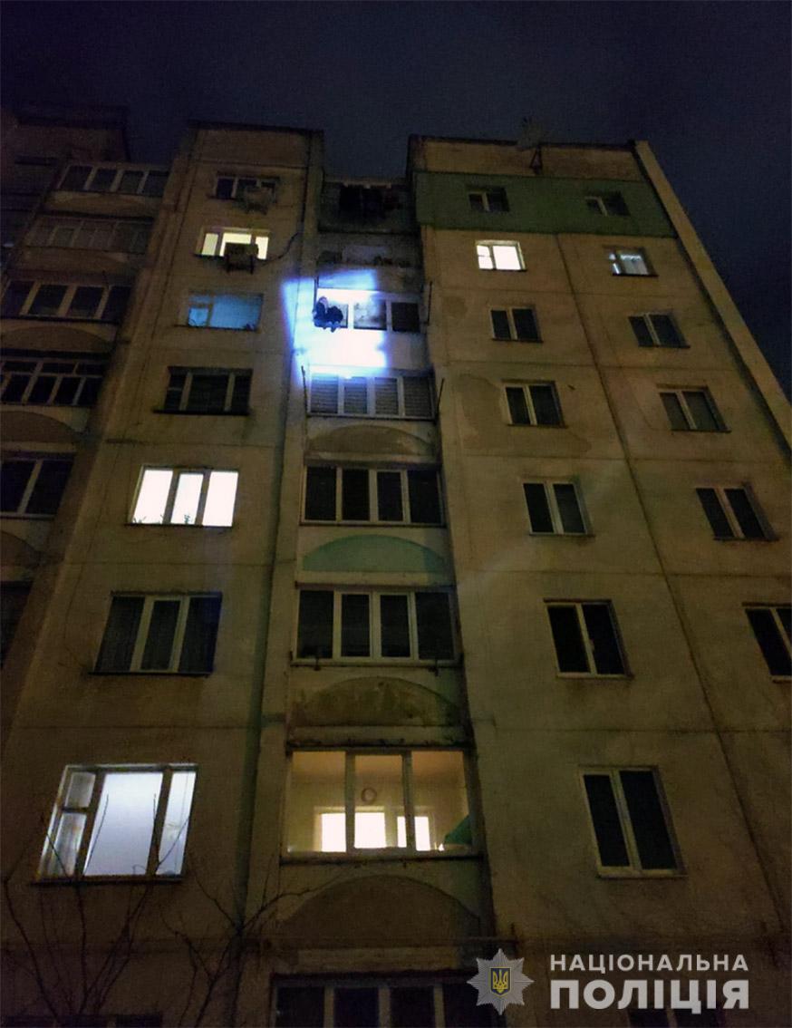 Поліцейські невідкладно піднялись на 6-й поверх, розбудили жінку, чиї мотузки затримали чоловіка, після чого зняли його з вікна, спустили на перший поверх і передали медикам.