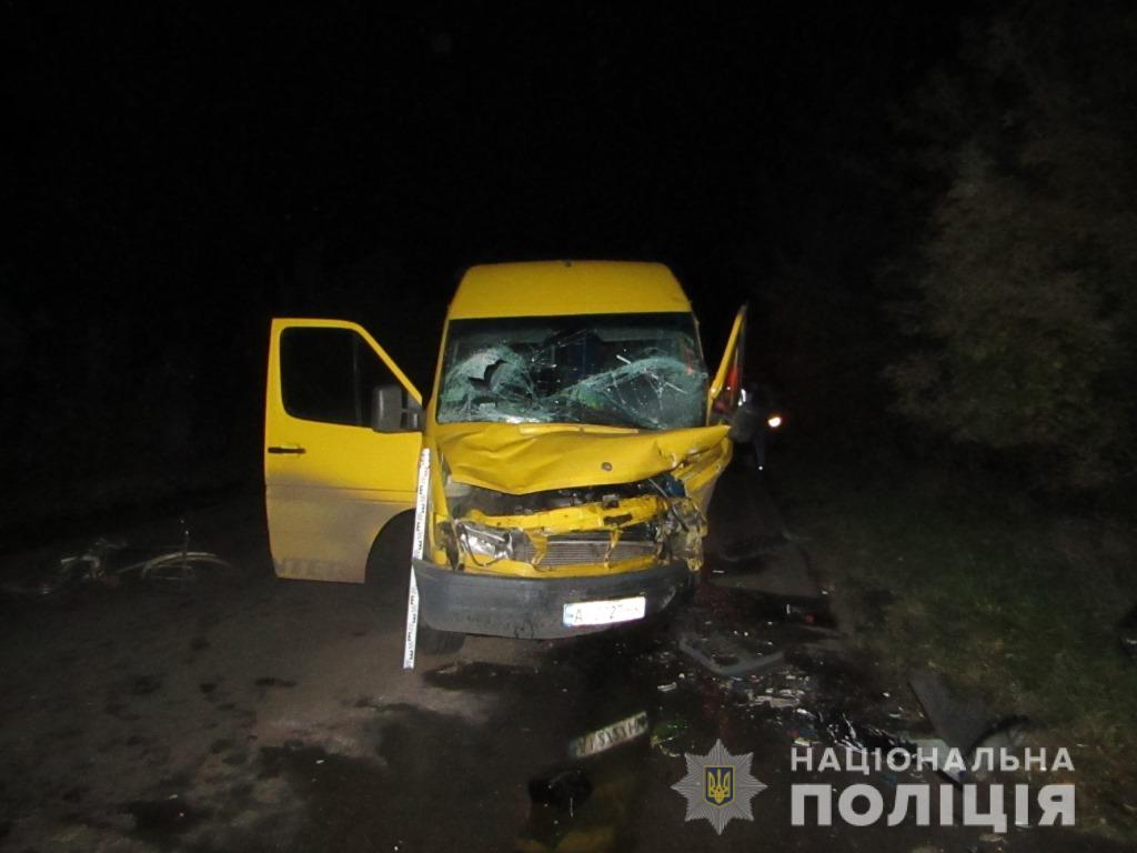 Встановлено, що 44-річний водій маршрутного автобуса «Mercedes-Benz» рухаючись у бік м. Фастів, допустив наїзд на велосипедиста. Після чого виїхав на зустрічну смугу руху, де сталося зіткнення з автомобілем «Mercedes-Benz», яким керував 48-річний киянин.