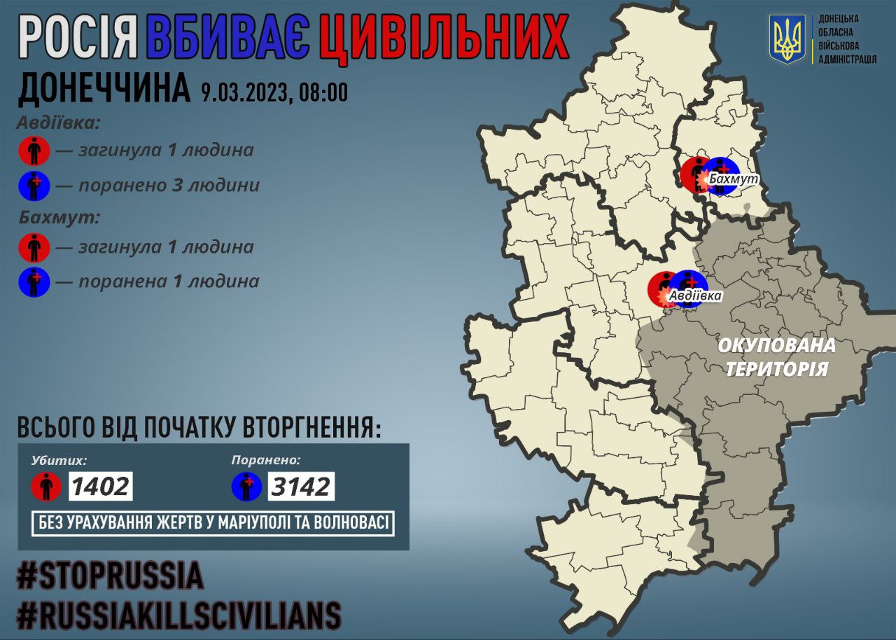 Всього за добу росіяни вбили 2 людей на Донеччині, поранили ще 4. Докладніше дивіться на інфографіці".