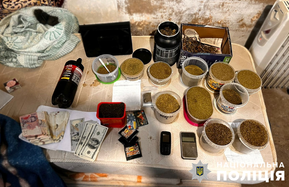 Під час проведення слідчих заходів за місцем мешкання 46-річного чоловіка поліцейські виявили 12 різноманітних ємностей, у яких господар зберігав суху та подрібнену речовину рослинного походження (попередньо наркотичний засіб – канабіс), а також ваги та зіп-пакети для пакування.