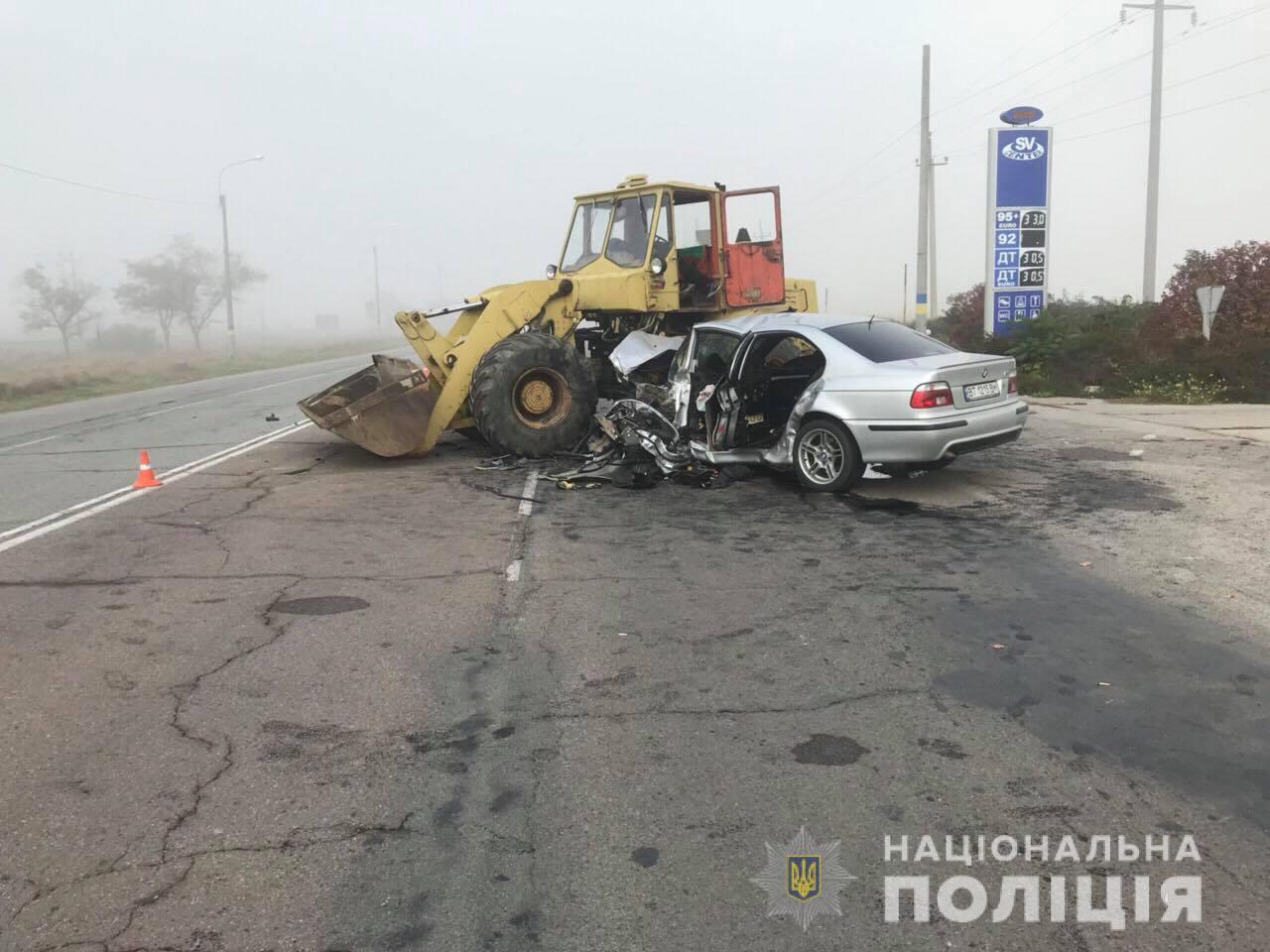 У «Єдиний центр 102» поліції Херсонщини надійшло повідомлення про дорожньо-транспортну пригоду з потерпілими на виїзді з м.Генічеськ. На місці пригоди поліцейські попередньо встановили, що водій трактора не врахував дорожніх обставин і, виїжджаючи в умовах туману з автозаправки на автодорогу, допустив зіткнення з легковим автомобілем «БМВ», в якому перебували 4 чоловіка.