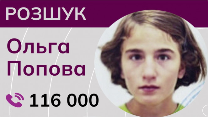 Ми розшукуємо п’ятнадцятирічну Ольгу Попову, яка мешкала на Донеччині і саме там їй довелося зустріти війну. Востаннє вона виходила на з...