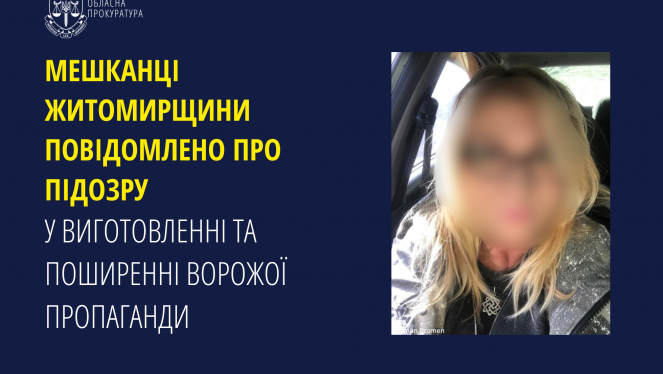 За процесуального керівництва Житомирської обласної прокуратури повідомлено про підозру місцевій мешканці за фактом виготовлення, пошире...