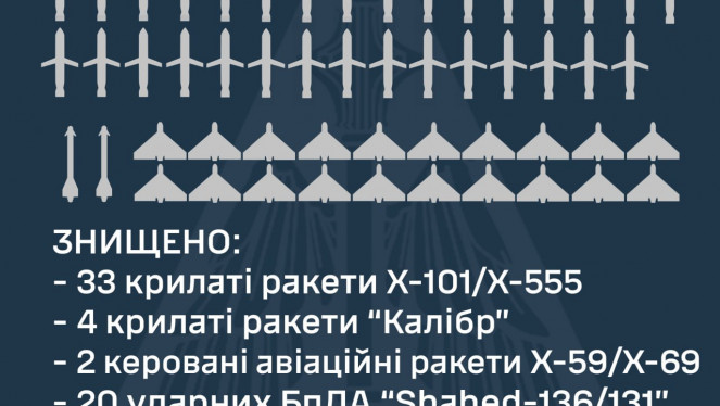 ЗНИЩЕНО 59 ПОВІТРЯНИХ ЦІЛЕЙ: 39 РАКЕТ ТА 20 УДАРНИХ БПЛА У ніч на 8 травня 2024 року російські окупанти завдали комбінованого удару р...