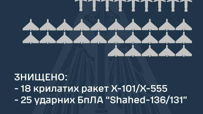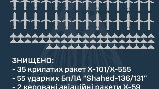 У ніч на 24 березня 2024 року російські окупанти атакували 29-ма крилатими ракетами Х-101/Х-555 із 14 літаків стратегічної авіації Ту-95...