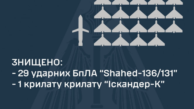Уночі 03 жовтня 2023 року російські окупанти атакували 31 ударним БпЛА «Shahed» та крилатою ракетою «Іскандер-К». Пуски здійснювались...