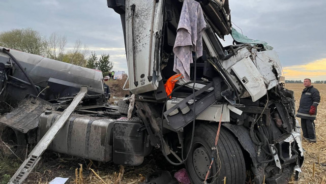 Аварія сталась у селі Нижча Кропивна. За попередньою інформацією слідства, зіткнулись дві вантажівки Volvo, одна з яких перевозила па...