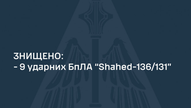 Про це голова Дніпропетровської ОВА Сергій Лисак повідомив у телеграм-каналі: "Вночі сили ППО знищили над областю 9⃣ шахедів – в Дніп...