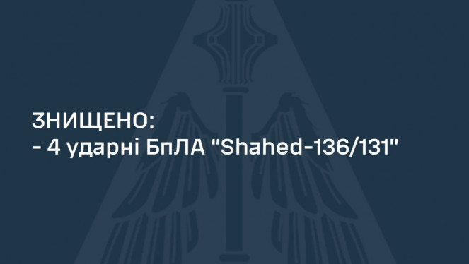 Вночі 4 квітня 2024 року противник атакував Харківщину ударними БпЛА типу «Shahed-131/136» з Курської області - рф. Усього зафіксовано п...