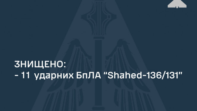 Про це голова Дніпропетровської ОВА Сергій Лисак повідомив у телеграм-каналі: "Вночі наші оборонці неба знищили «зграю» з 11 ворожих ...
