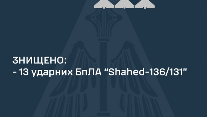 Уночі 27 березня 2024 року противник атакував ударними БпЛА типу «Shahed» із Курської області – рф. Усього застосовано 13 ворожих безпіл...
