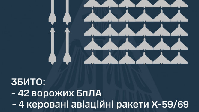 Від минулого вечора до ранку Сили Оборони збили 59 ворожих БпЛА, ще 45 локаційно втрачені, - КПС ЗСУ