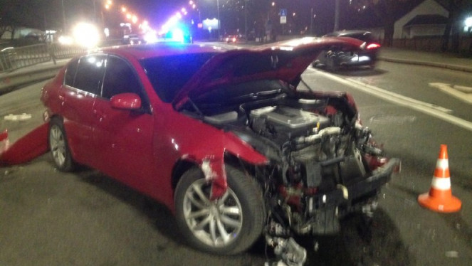 ДТП трапилася на бульварі Перова у Києві напередодні пізно ввечері. Тут зіштовхнулася KIA та елітне Infiniti. Про це знімальна група «Ма...