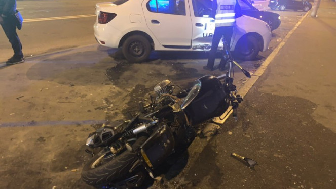 Дорожньо-транспортна пригода трапилася у Києві на бульварі Перова пізно ввечері. Тут зіткнулася іномарка служби таксі із мотоциклом. Про...