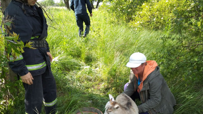 Нещасний випадок трапився із маленьким козенятком у м. Дружківка Донецької області. Тваринка гуляла у траві і не помітила каналіза...