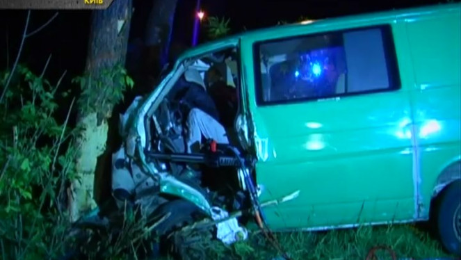 Жахлива аварія сталася вночі на столичному шосе: автомобіль Volkswagen Transporter, який їхав в бік Києва врізався в дерево. Кермувальни...