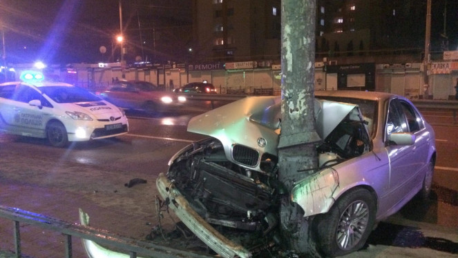 Репортаж з місця події: У Києві на Чоколівському бульварі автомобіль з іноземцями влетів електроопору. Зі слів поліції, в автомобі...