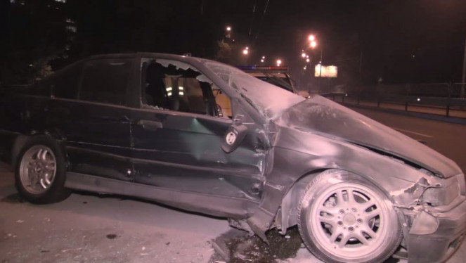 Вночі у Києві на вулиці Стеценка водій BMW на швидкості не вписався у поворот, протаранив Skoda (Uber), яка зупинилась підібрати пасажир...