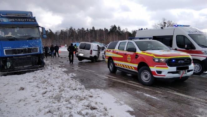 Дорожньо-транспортна пригода сталася близько 11:20 на 226 км автодороги Київ-Ковель. У результаті зіткнення фури з легковиком травми отр...
