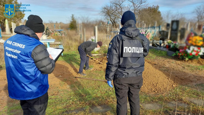 Прокурори Херсонської обласної прокуратури спільно зі слідчими поліції та криміналістами провели ексгумацію та огляд тіла мирної мешканк...